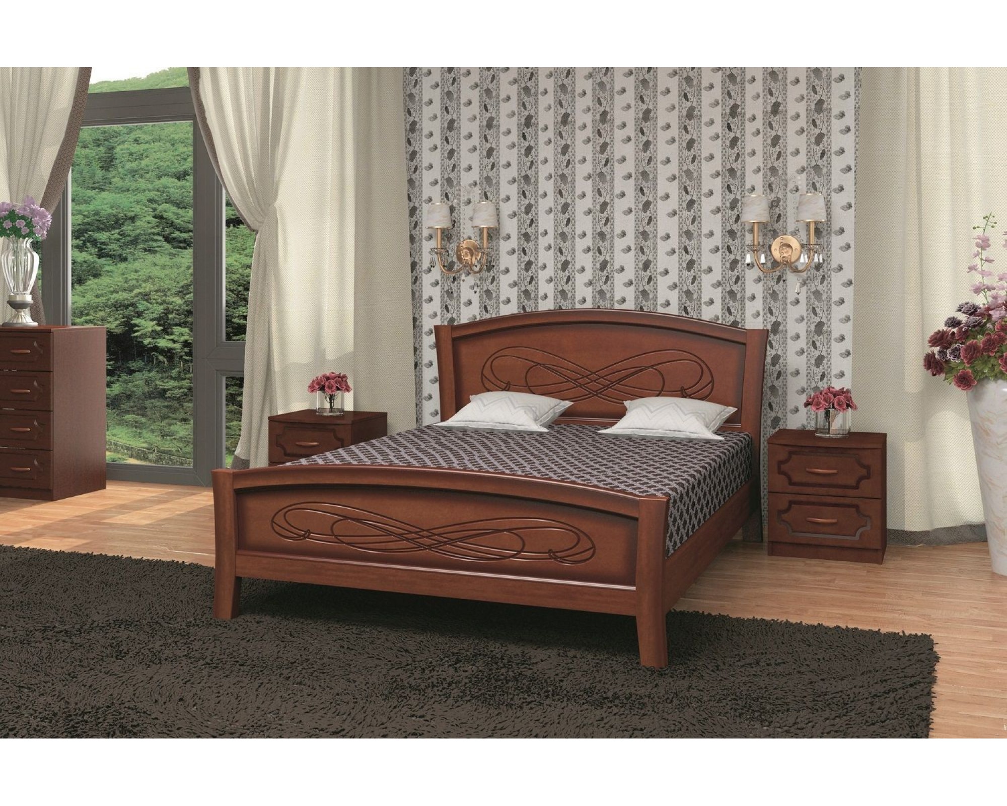 Кровати из массива серии "Карина-16" отлично подойдут тем, кто предпочитает классику: массив сосны, натуральные древесные оттенки ореха, плавные формы, изящная резьба, ажурные вставки.