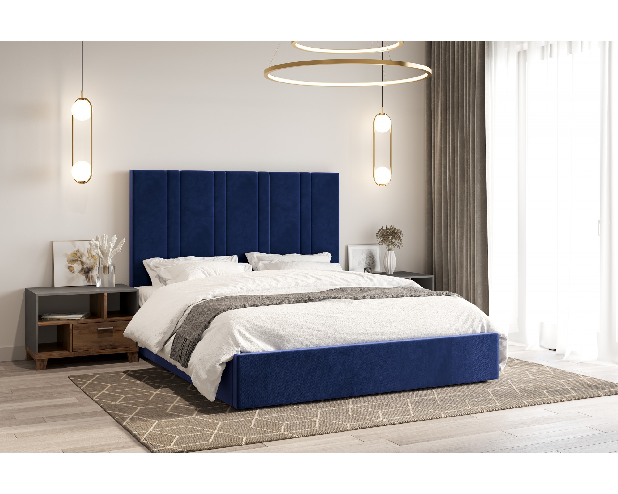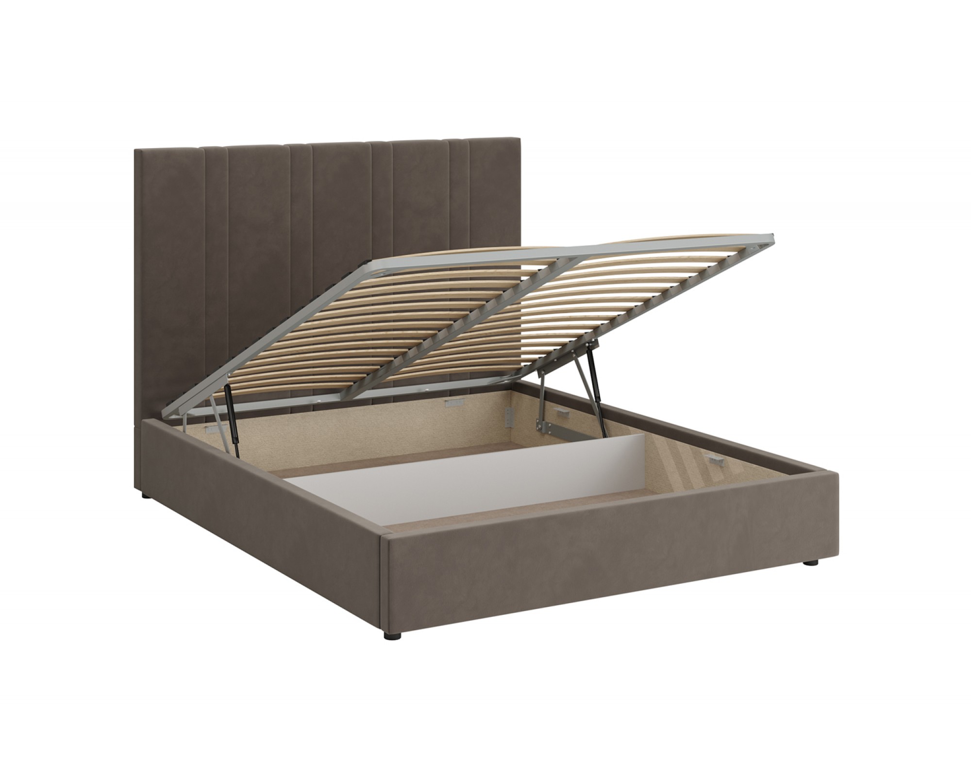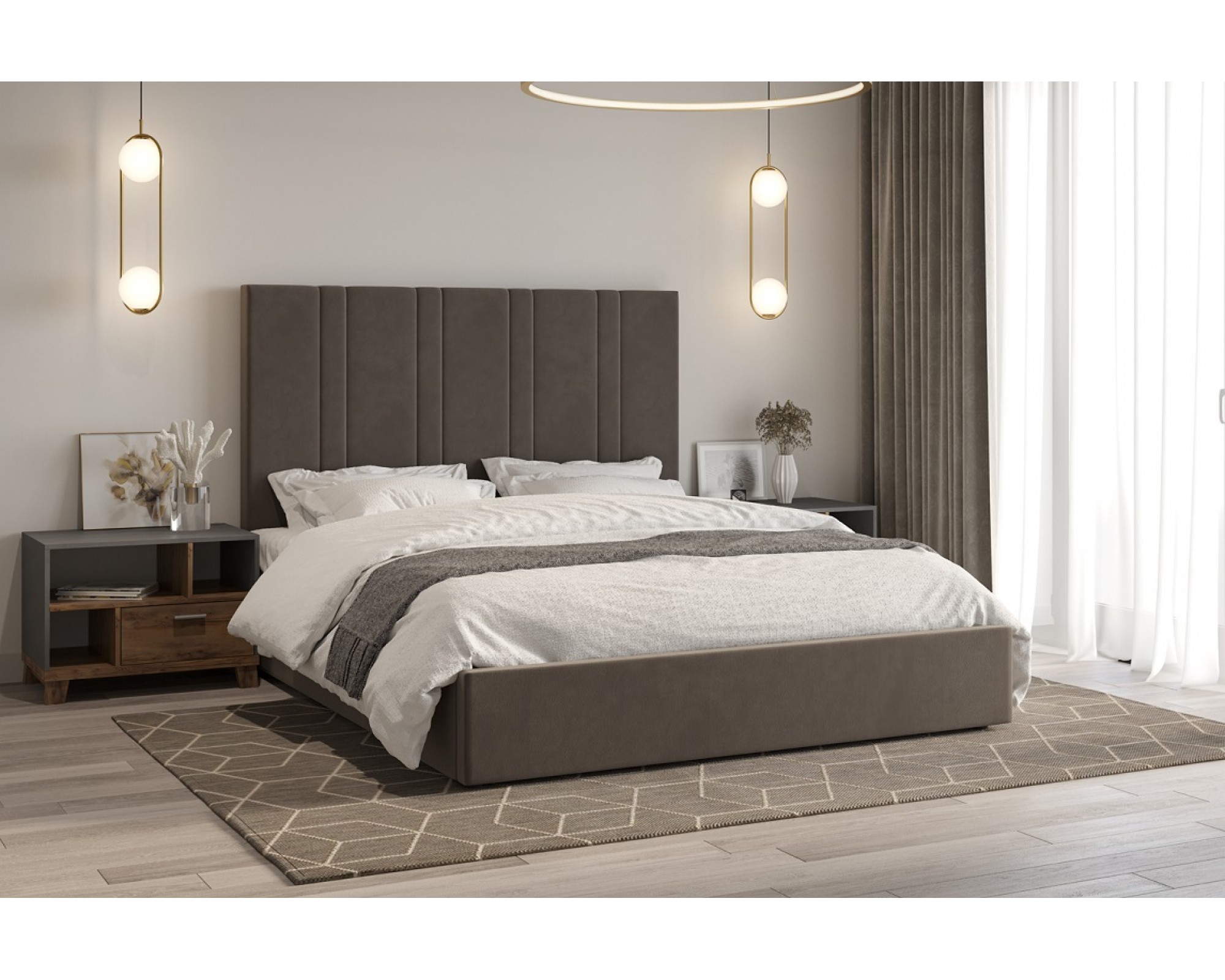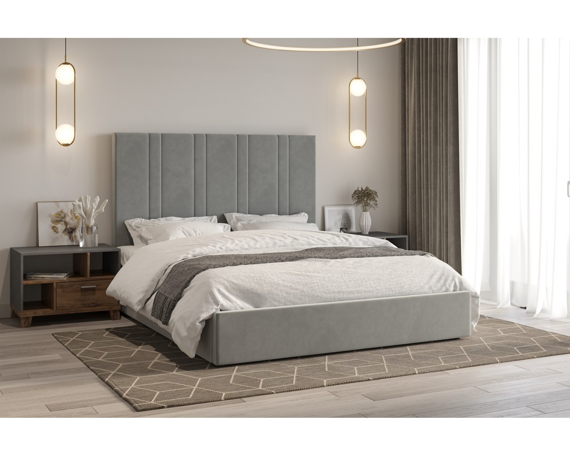 Кровать с мягким изголовьем ХАРВИ украшена стёжкографией в виде вертикальных линий на высокой головной спинке (высота 134 см) и выполнена в размере ширины спального места 160 см. Отделка придает декору строгости и лаконичности, а мягкая обивка - комфорта и роскоши. Интерьерная кровать ХАРВИ комплектуется металлокаркасным основанием (вариант 1) или металлокаркасом с подъемным механизмом с газовым амортизатором (газлифтом) (вариант 2). В случае выбора 2-го варианта основания спального места в кровати будет находиться бельевой ящик.