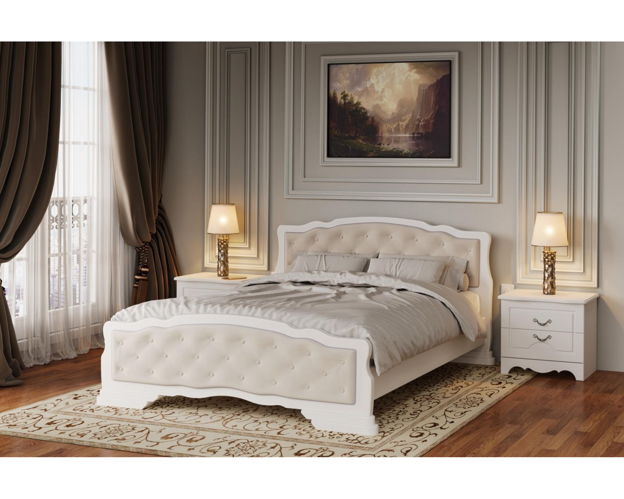 Элегантная кровать из массива с мягким изголовьем Карина-10 будет эффектным дополнением Вашей спальни, оформленной в в классическом интерьере.