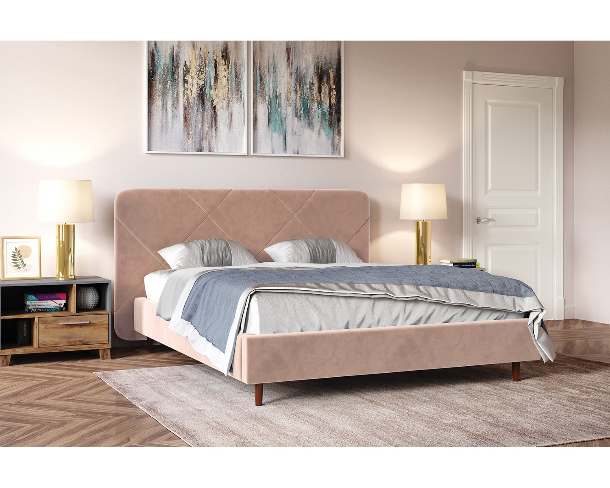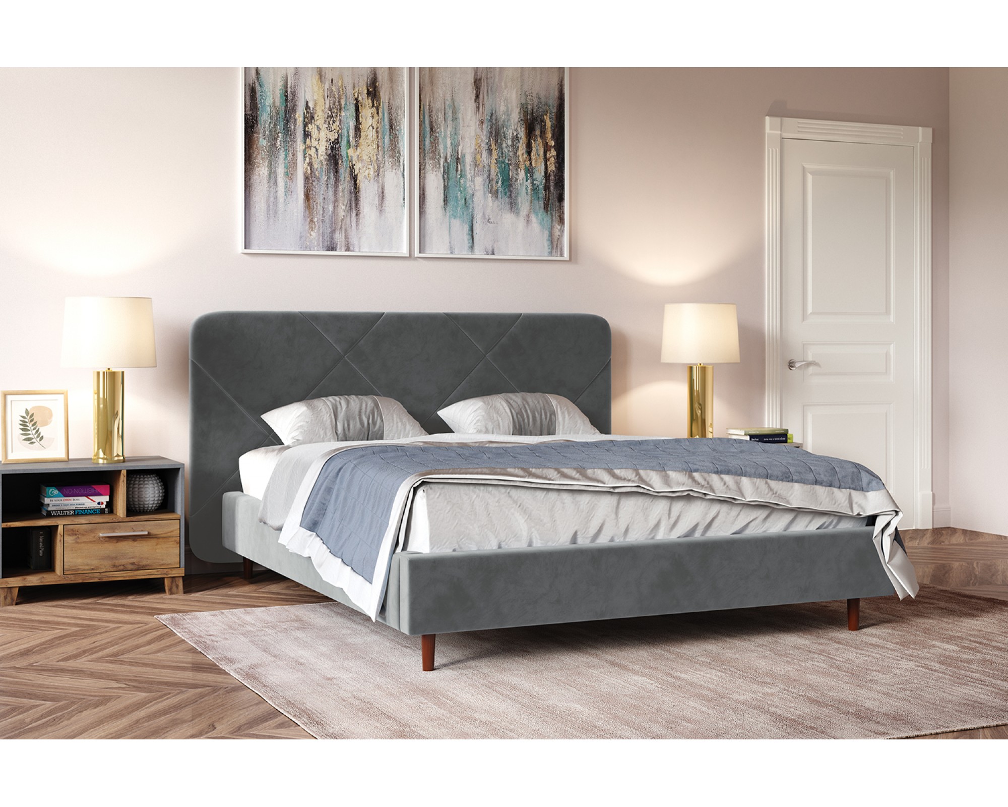 Варианты цвета кровати: Глубокий Синий, Жемчужно-Серый, Пудра, Холодный Серый
