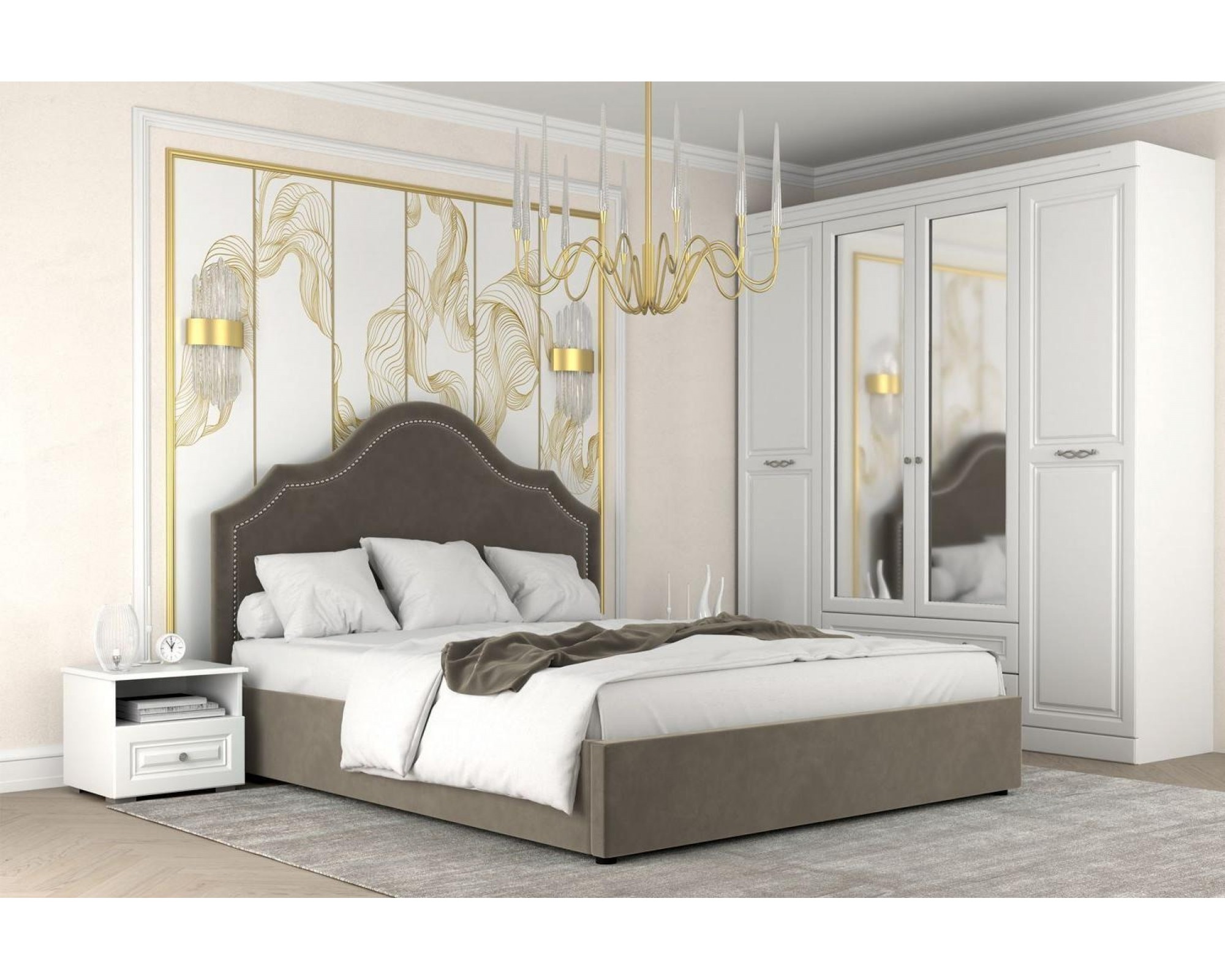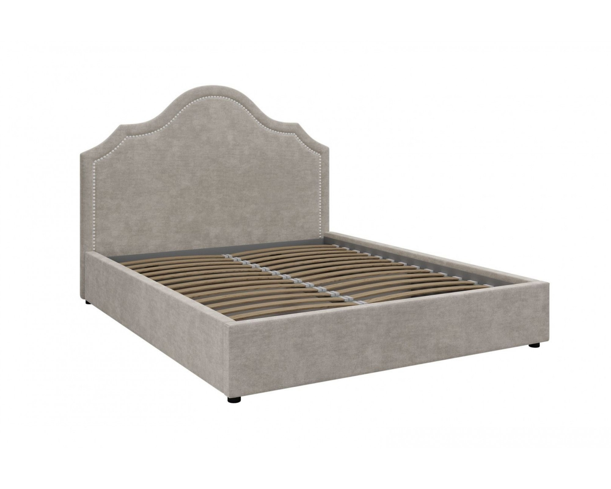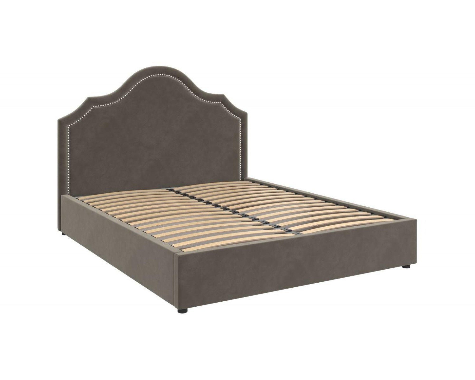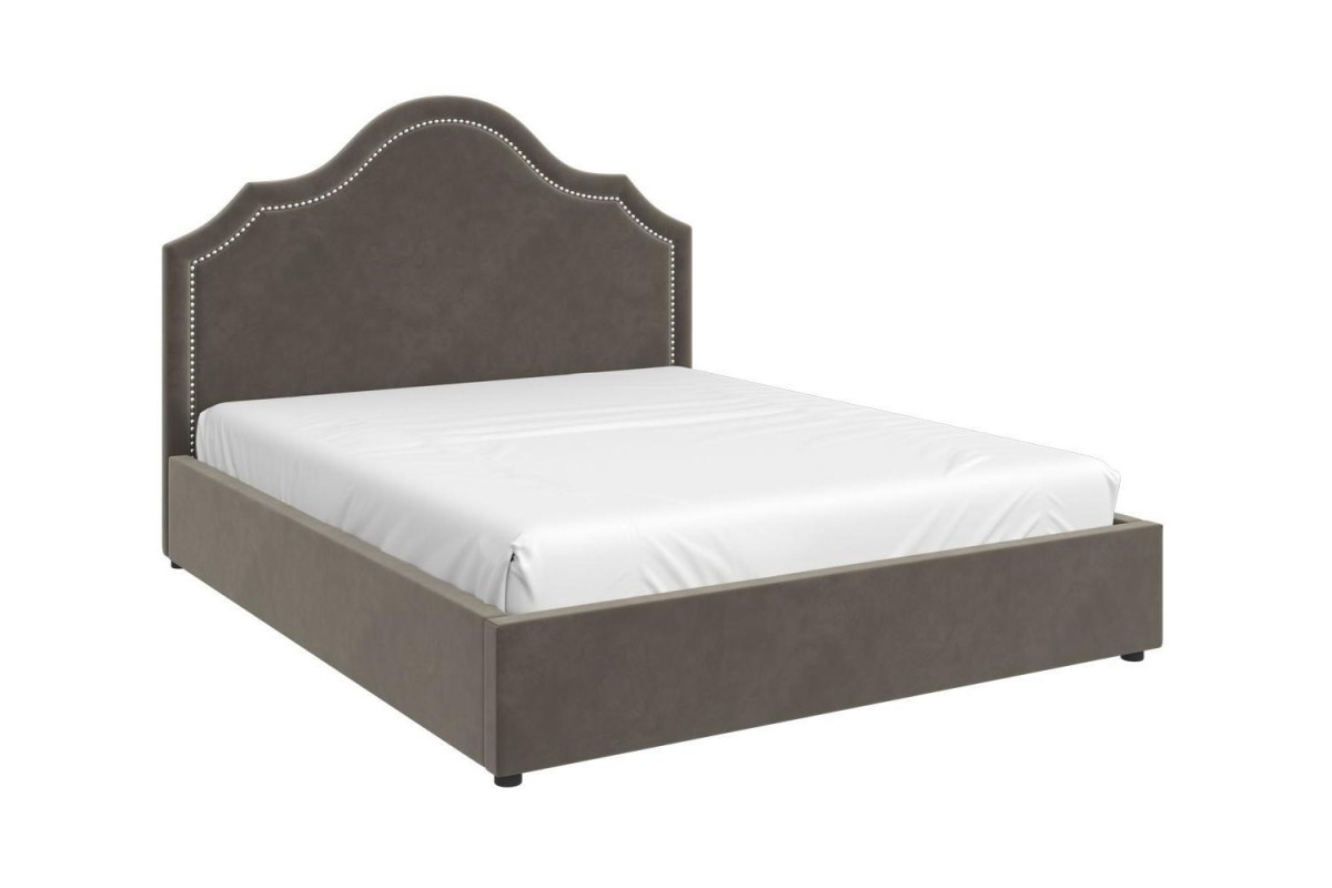 Кровать Оливия станет привлекательным и оригинальным акцентом в спальне. Декоративные гвоздики в отделке делают модель более утонченной, подчеркивая изгибы изголовья, что придает кровати особый шарм и элегантность. Интерьерная кровать Оливия комплектуется металлокаркасом и дополнительно может быть оснащена подъемным механизмом с газовым амортизатором (газлифтом). Двуспальные мягкие кровати БРАВОмебель имеют надежный каркас из МДФ, фанеры и ЛДСП. В качестве наполнителя используются различные материалы, такие как холкон, поролон и периотек, которые обеспечивают мягкость, комфорт и долговечность изделия. Внешний слой обивки кровати выполнен из износостойкой качественной ткани.