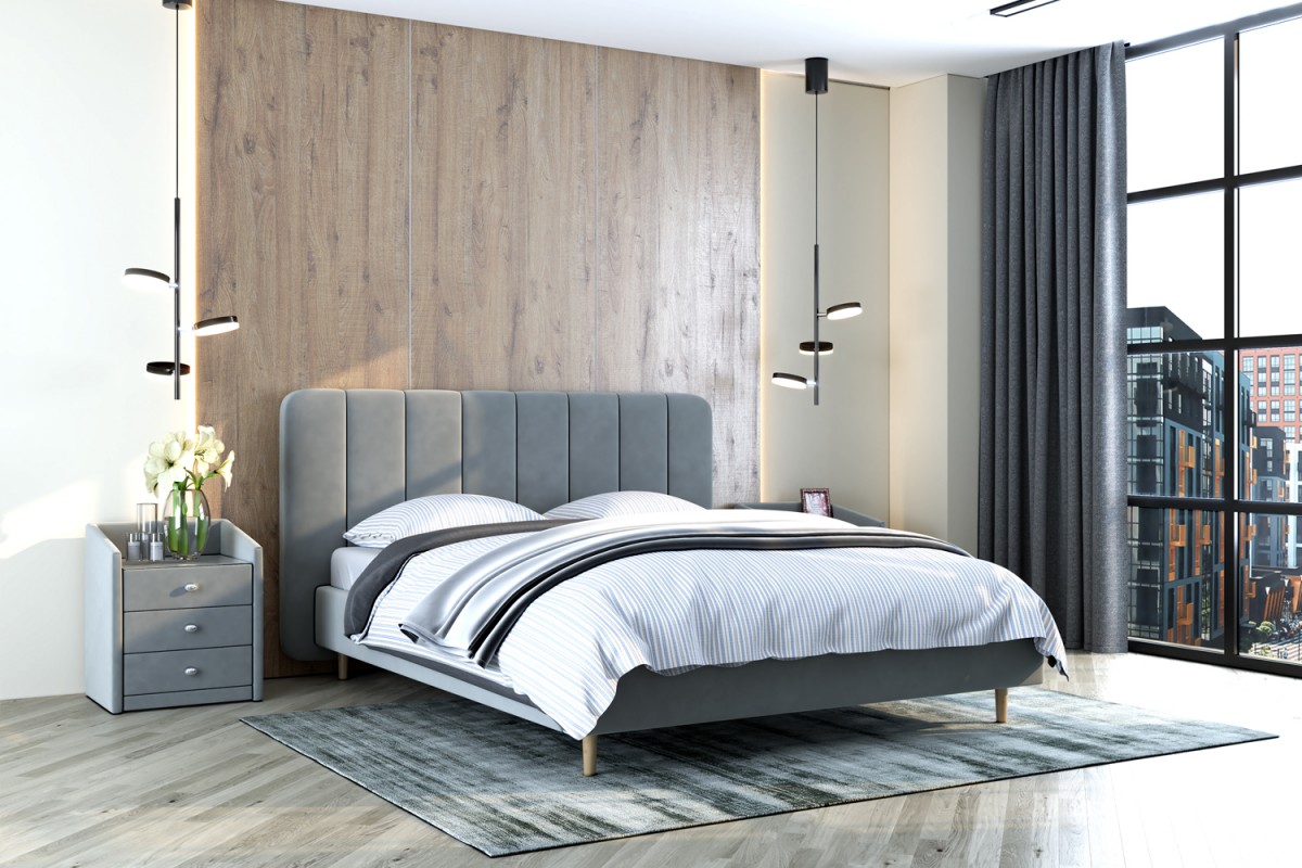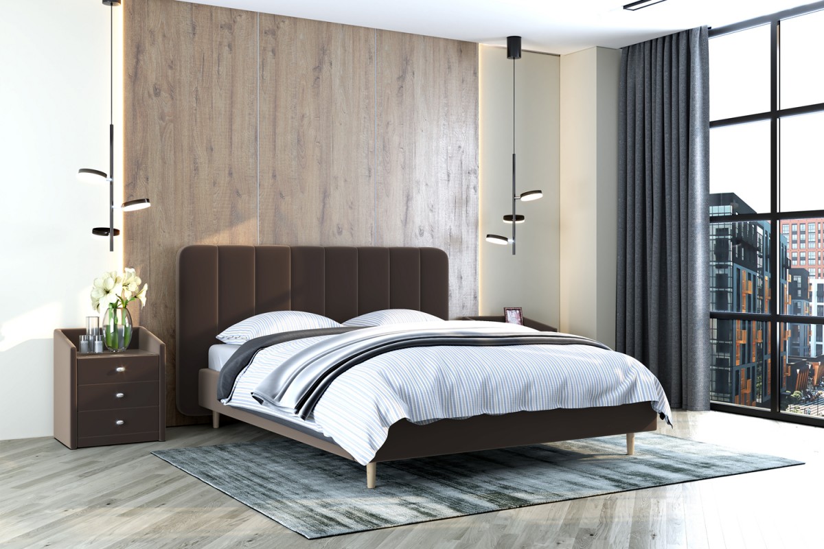 Кровати БРАВОмебель имеют надежный каркас из МДФ, фанеры и ЛДСП. В качестве наполнителя используются различные материалы, такие как холкон, поролон и периотек, которые обеспечивают мягкость, комфорт и долговечность изделия. Внешний слой обивки кровати выполнен из износостойкой качественной ткани в цветах светло-серый, джинс, каппучино, холодный серый и песчаный.