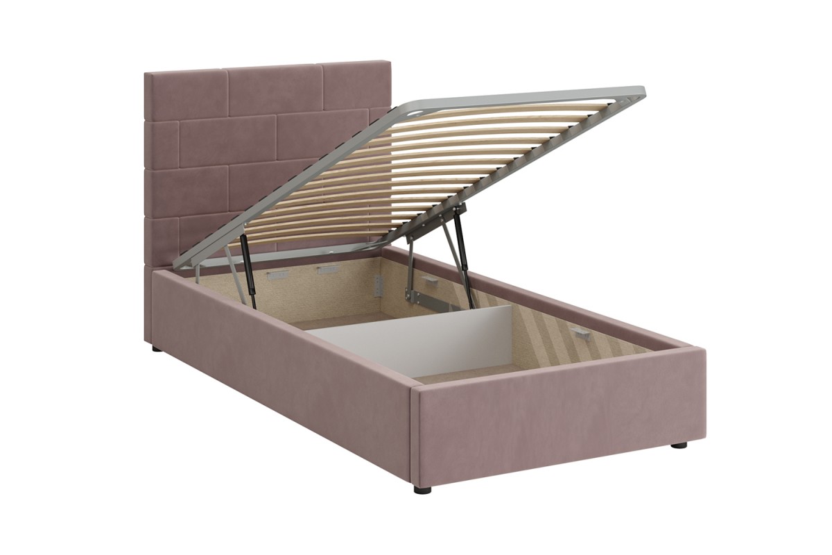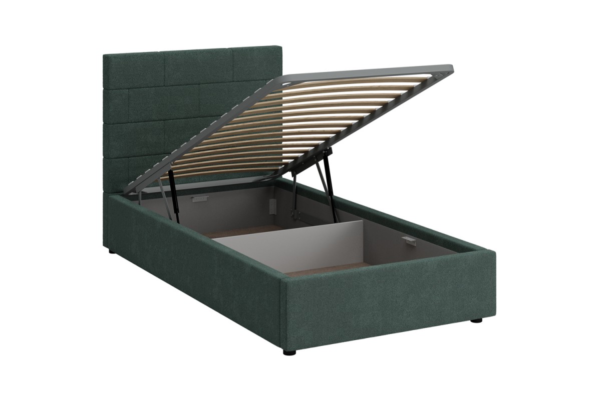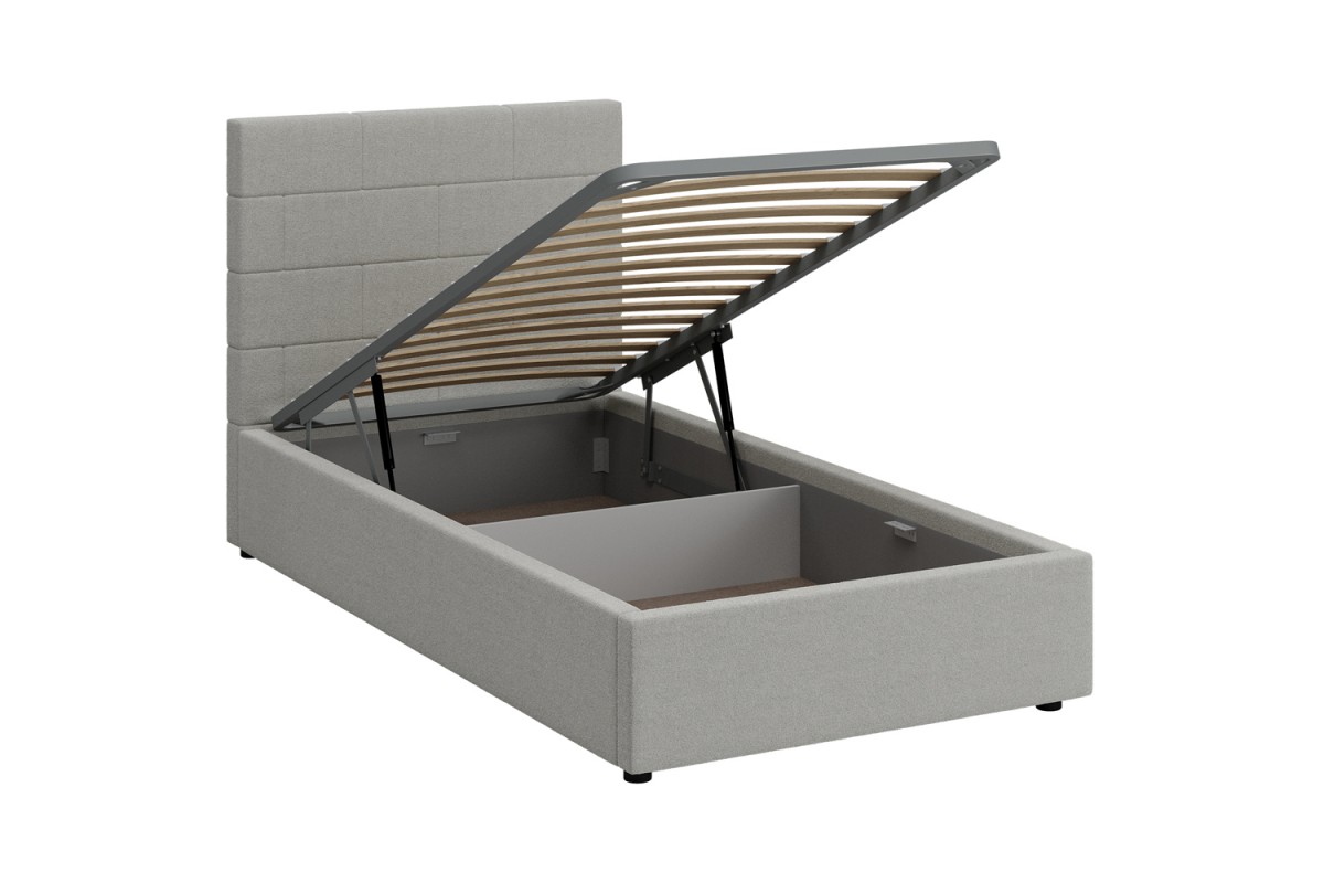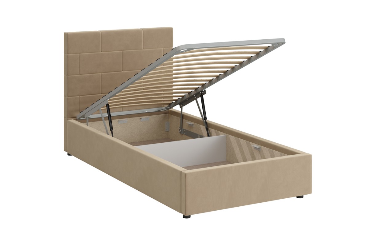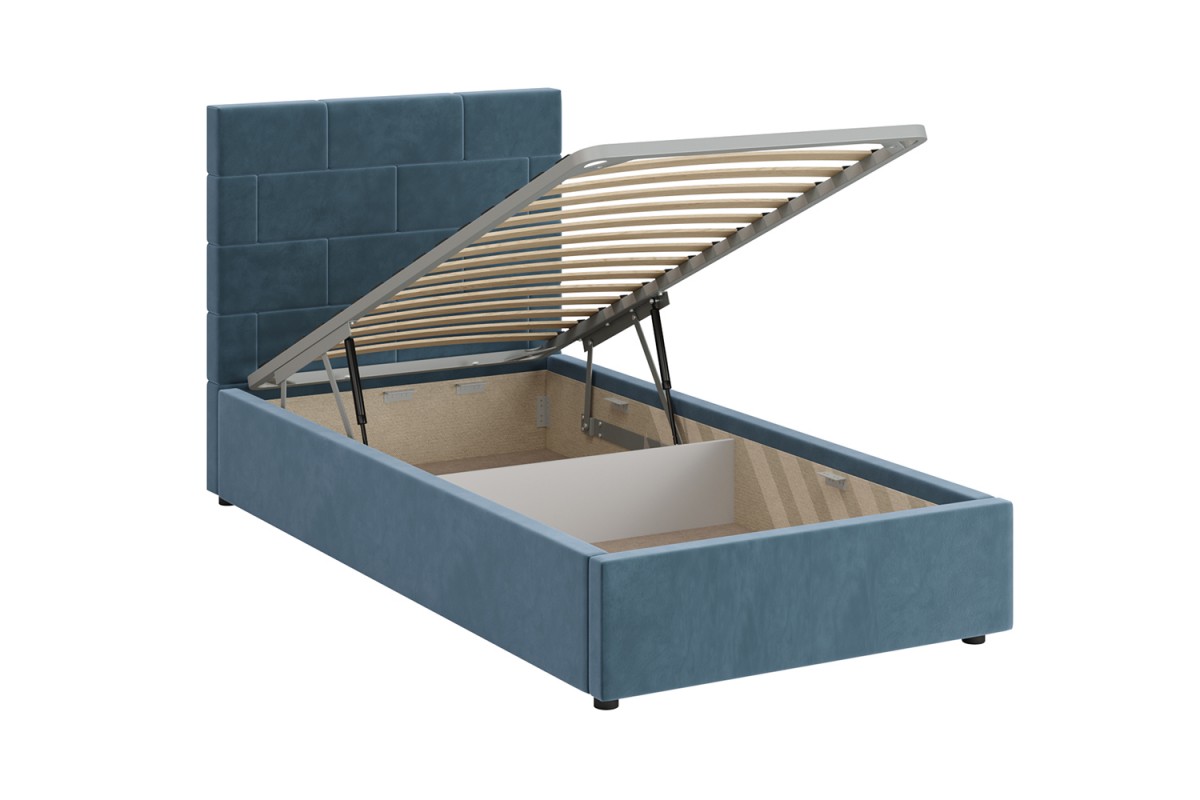 Кровать с мягким изголовьем ТАЙМ украшена стёжкографией в виде геометрического узора на головной спинке (высота 104 см) и выполнена в размере ширины спального места 90 см. Отделка придает декору строгости и лаконичности, а мягкая обивка - комфорта и роскоши. Односпальная интерьерная кровать ТАЙМ комплектуется металлокаркасным основанием (вариант 1) или металлокаркасом с подъемным механизмом с газовым амортизатором (газлифтом) (вариант 2). В случае выбора 2-го варианта основания спального места в кровати будет находиться вместительный бельевой ящик.