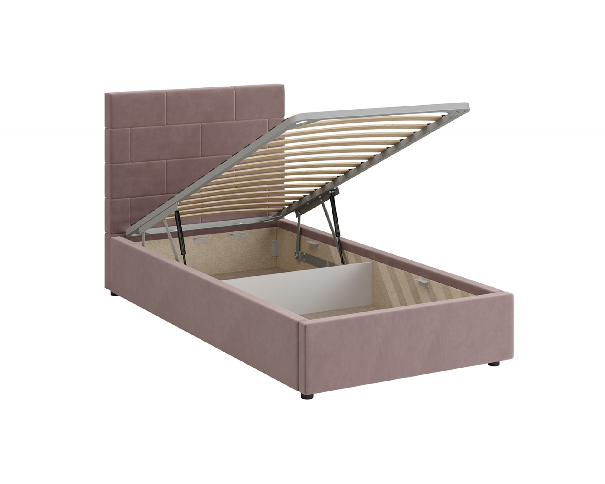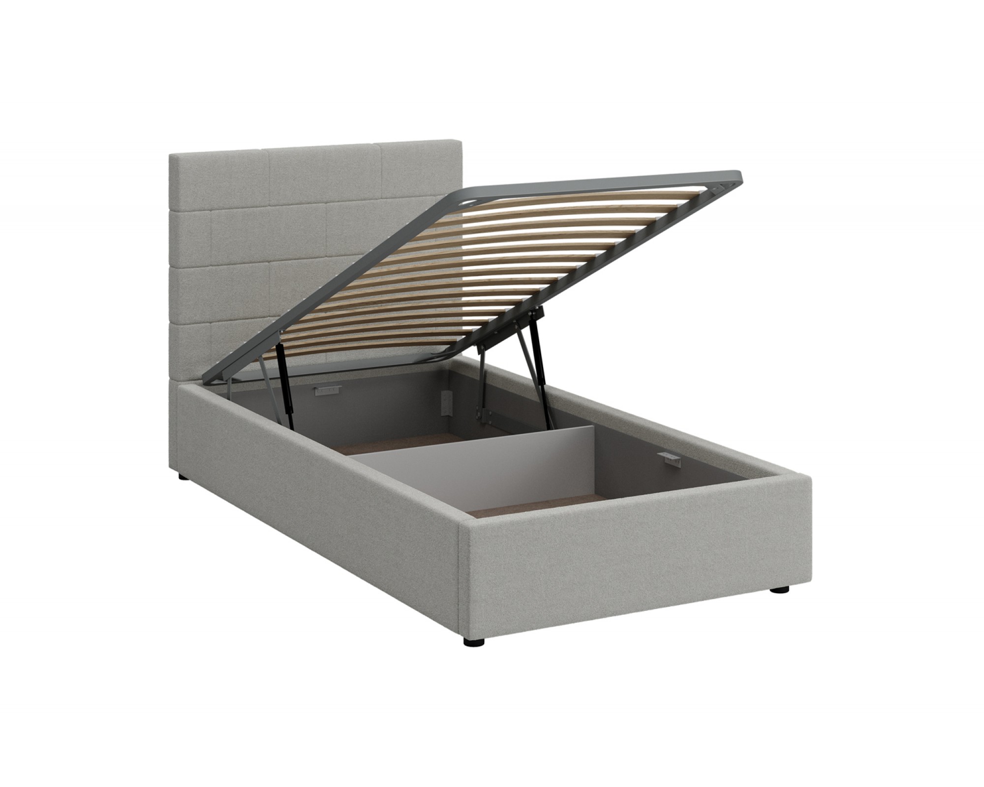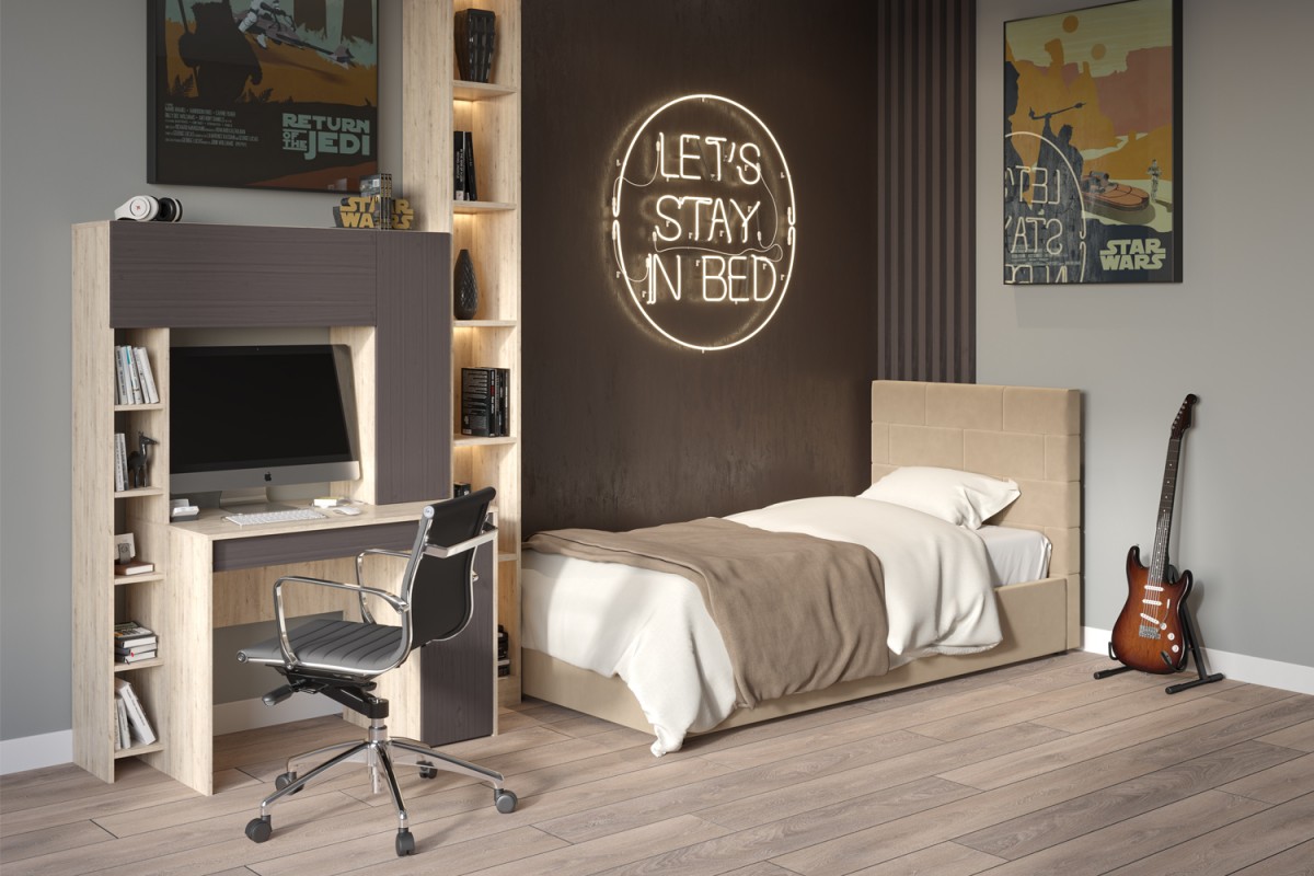 Кровать с мягким изголовьем ТАЙМ украшена стёжкографией в виде геометрического узора на головной спинке (высота 104 см) и выполнена в размере ширины спального места 90 см. Отделка придает декору строгости и лаконичности, а мягкая обивка - комфорта и роскоши. Односпальная интерьерная кровать ТАЙМ комплектуется металлокаркасным основанием (вариант 1) или металлокаркасом с подъемным механизмом с газовым амортизатором (газлифтом) (вариант 2). В случае выбора 2-го варианта основания спального места в кровати будет находиться вместительный бельевой ящик.