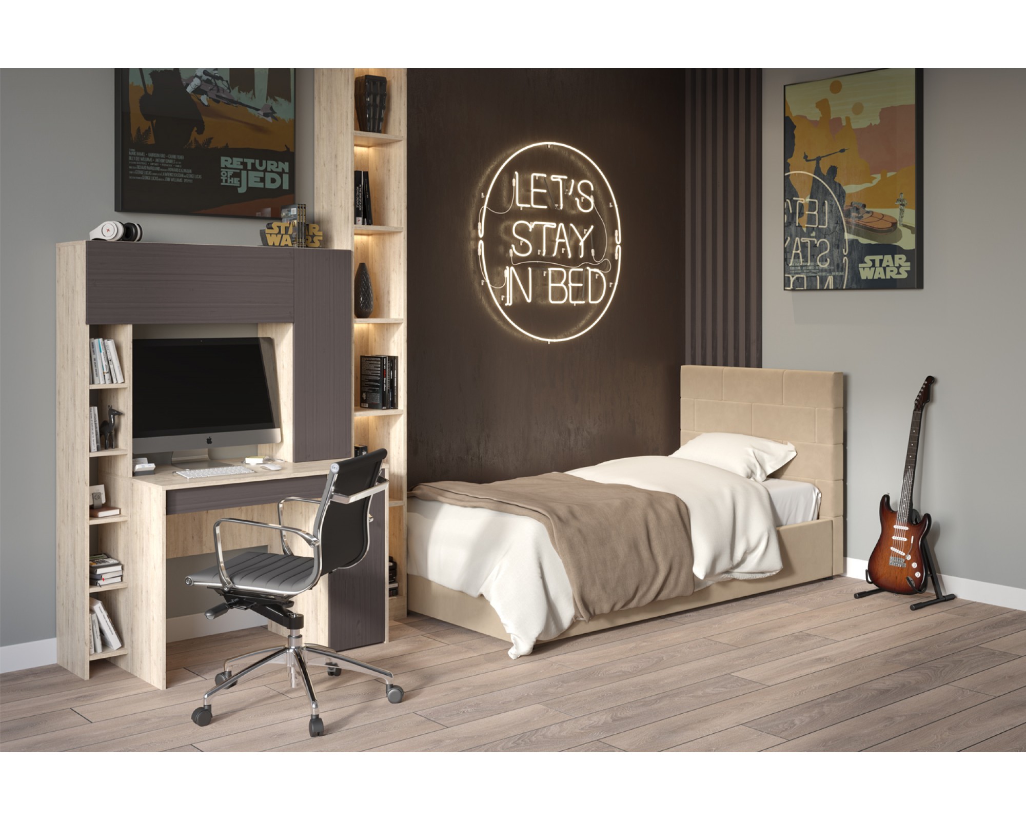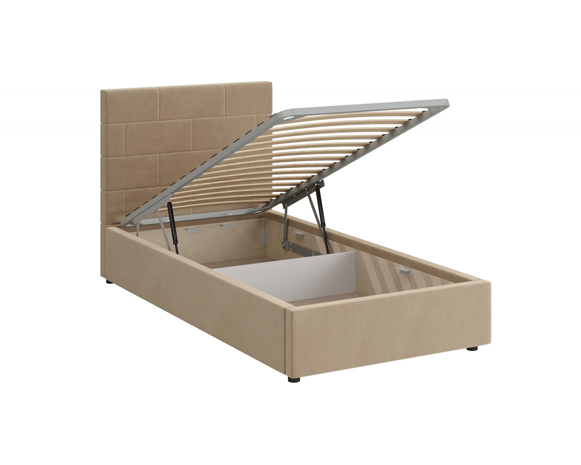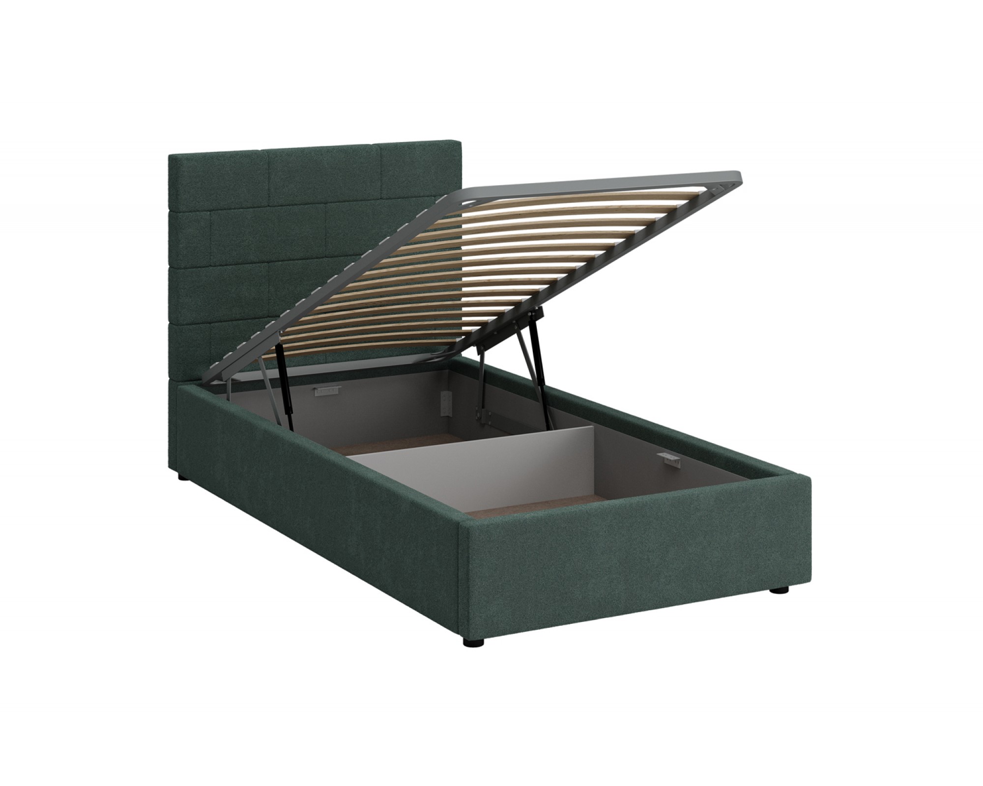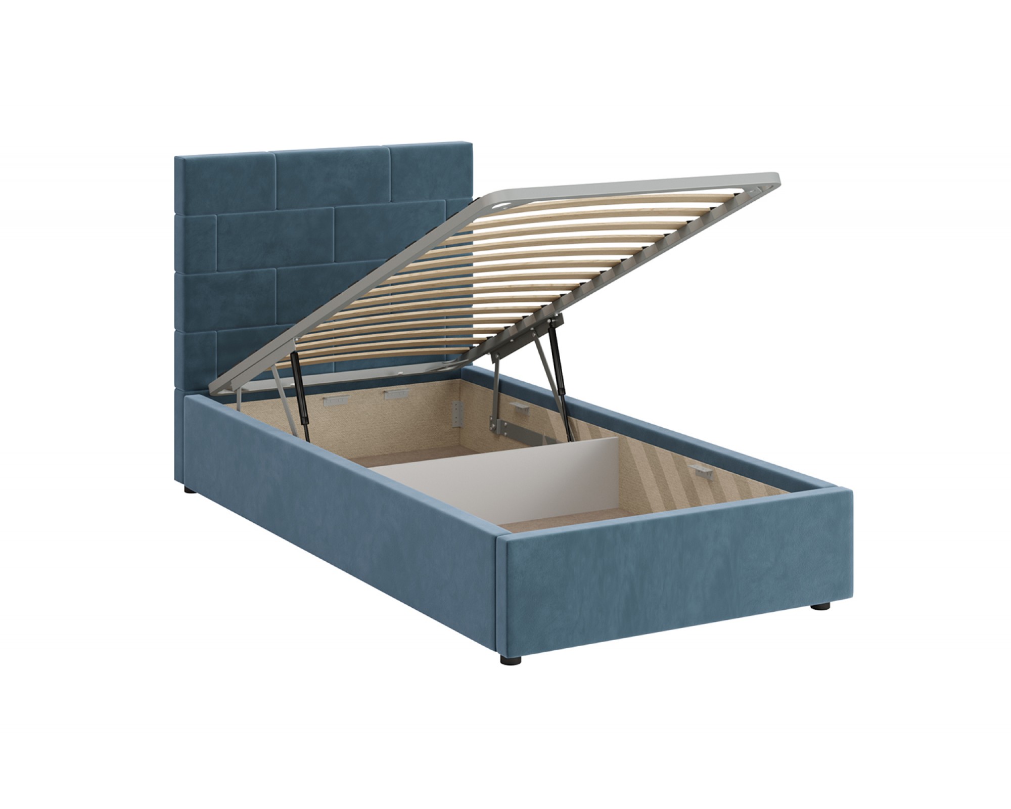 Кровать с мягким изголовьем ТАЙМ украшена стёжкографией в виде геометрического узора на головной спинке (высота 104 см) и выполнена в размере ширины спального места 90 см. Отделка придает декору строгости и лаконичности, а мягкая обивка - комфорта и роскоши. Односпальная интерьерная кровать ТАЙМ комплектуется металлокаркасным основанием (вариант 1) или металлокаркасом с подъемным механизмом с газовым амортизатором (газлифтом) (вариант 2). В случае выбора 2-го варианта основания спального места в кровати будет находиться вместительный бельевой ящик.