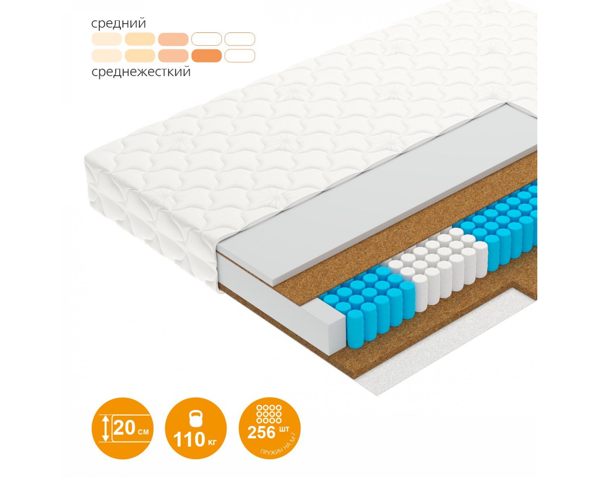 3. Кокосовая койра: натуральный материал, состоящий из спрессованных волокон кокосового ореха, полностью пропитанных латексом. Слои из прочной и долговечной кокосовой койры используются для придания матрасу дополнительной жесткости.