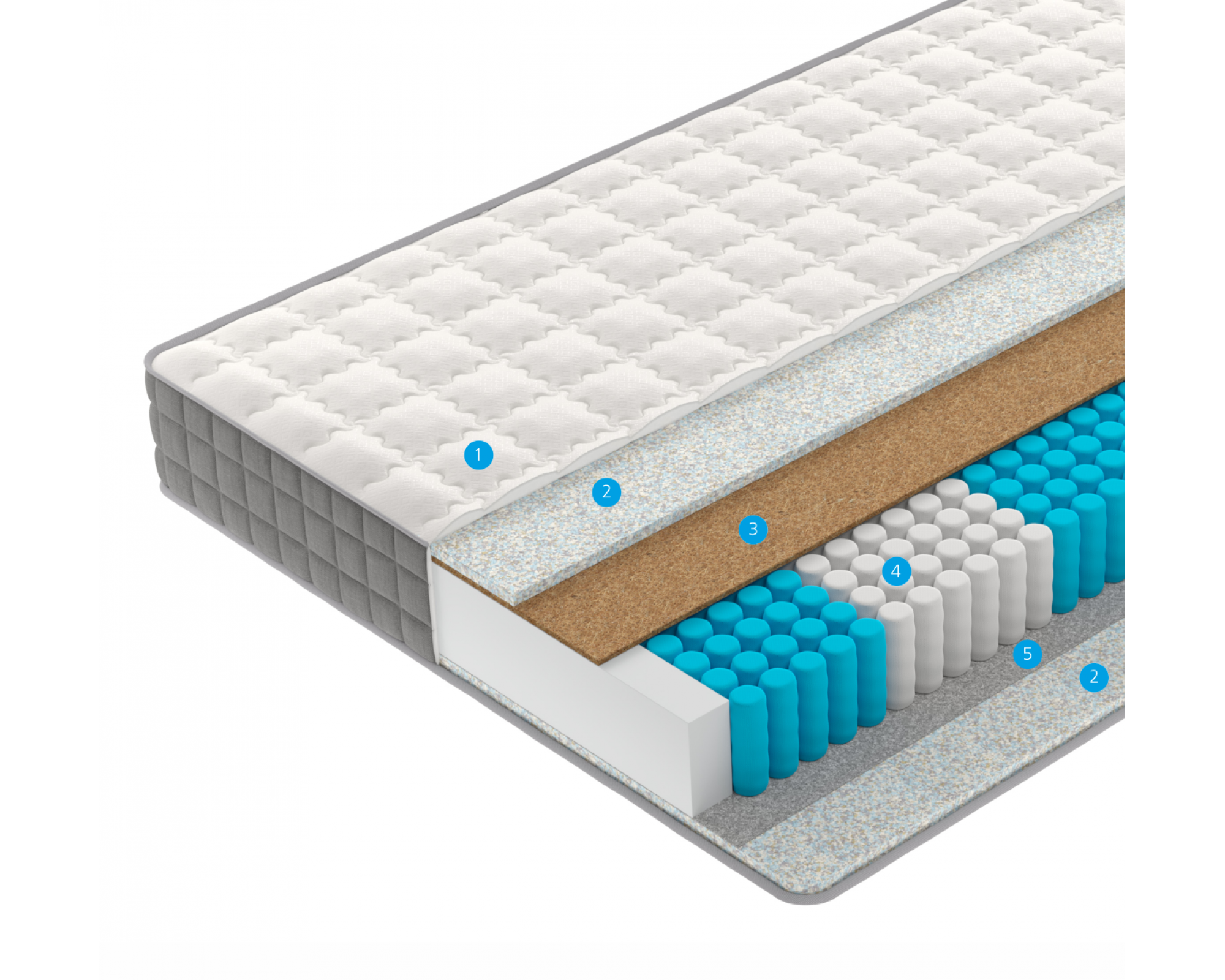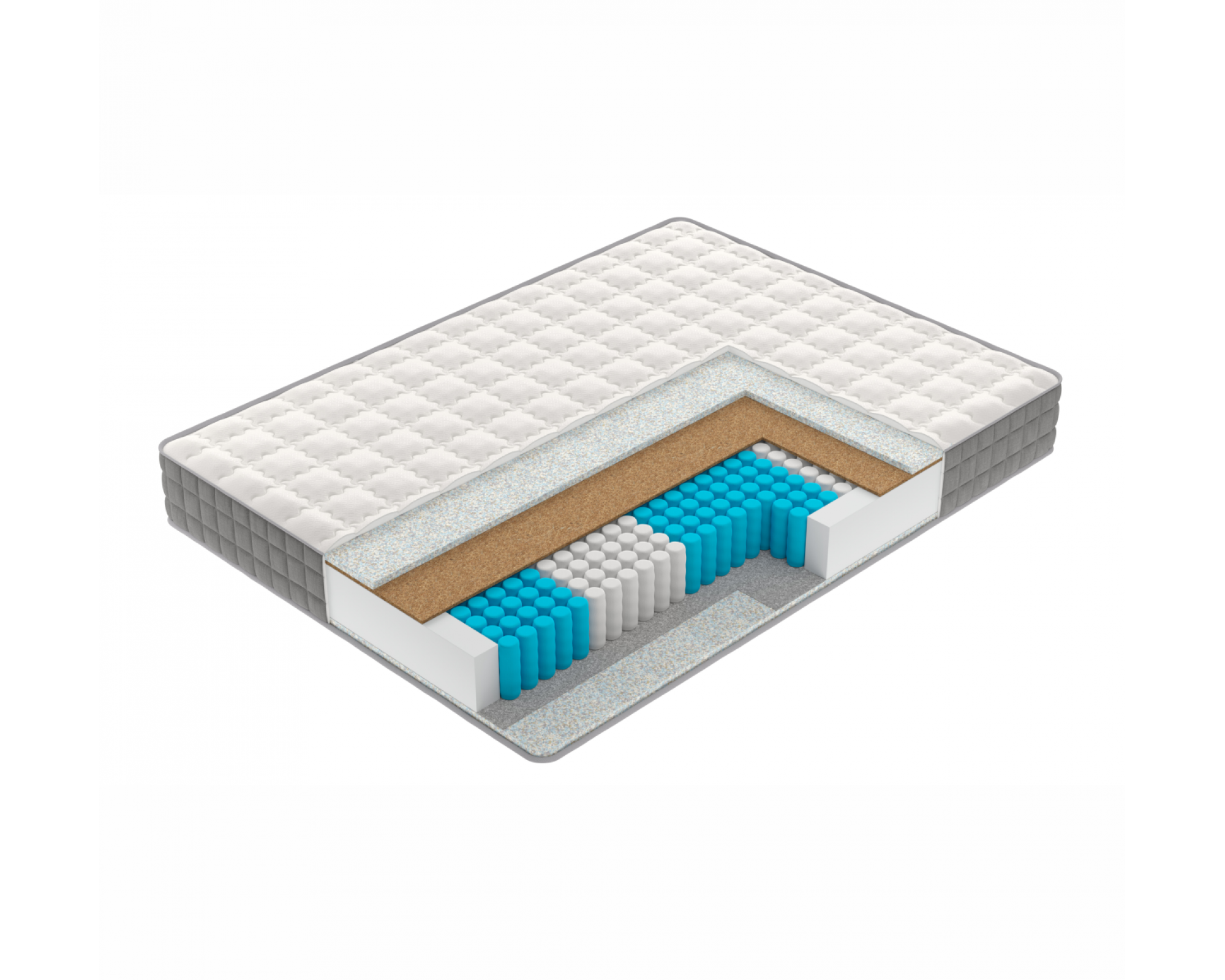 3. Кокосовая койра: натуральный материал, состоящий из спрессованных волокон кокосового ореха, полностью пропитанных латексом. Слои из прочной и долговечной кокосовой койры используются для придания матрасу дополнительной жесткости..