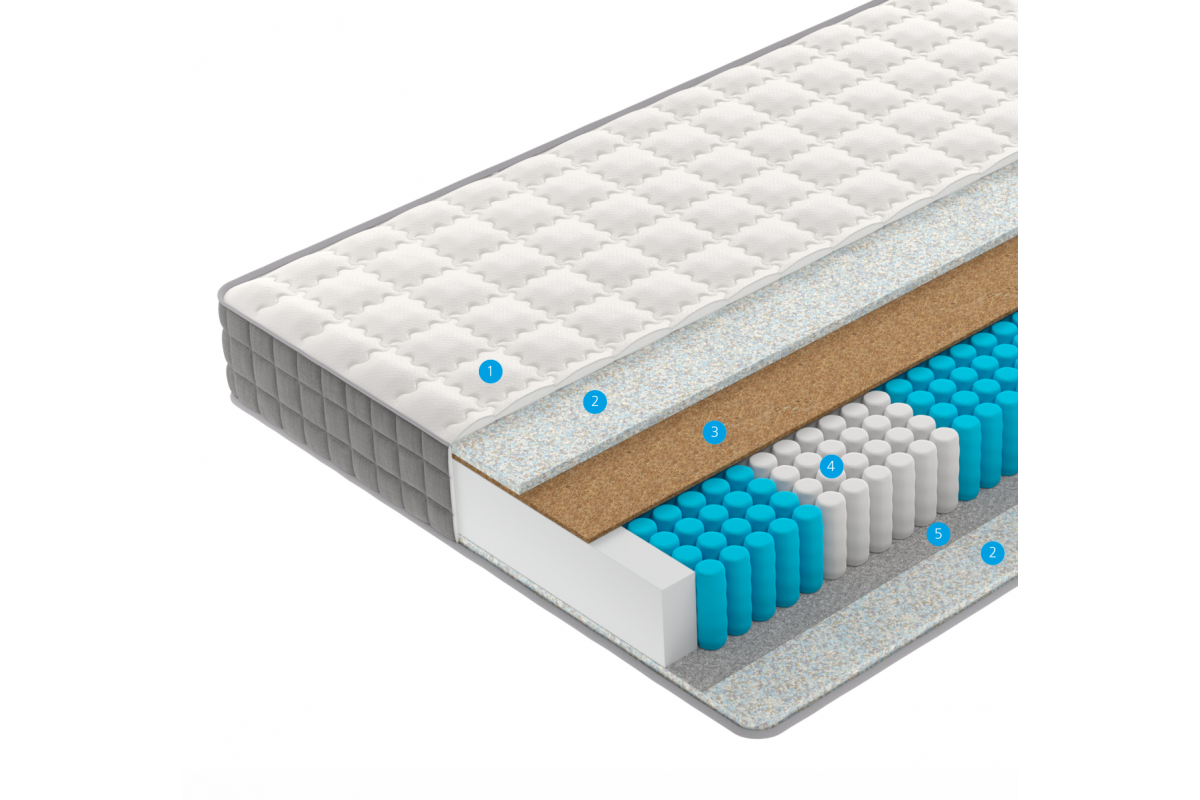 1. Чехол, 2. AirFoam, 3. Кокосовая койра, 4. Smartpocket Pro 5-Zone, 5. Термоволокно
