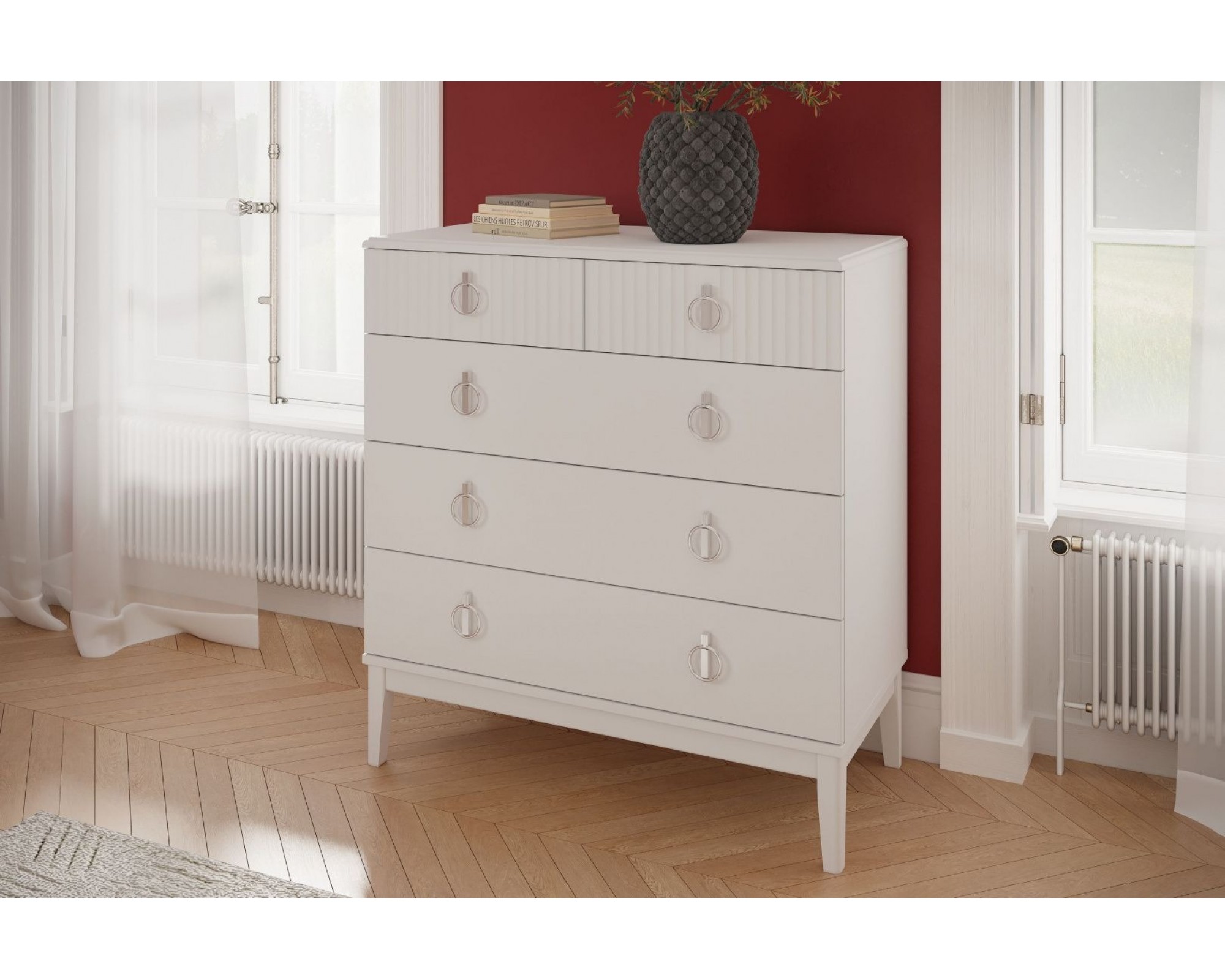 Комод 5 ящиков, вариант 2 из коллекции спальни Фарго (Белый) БРАВОмебель.
