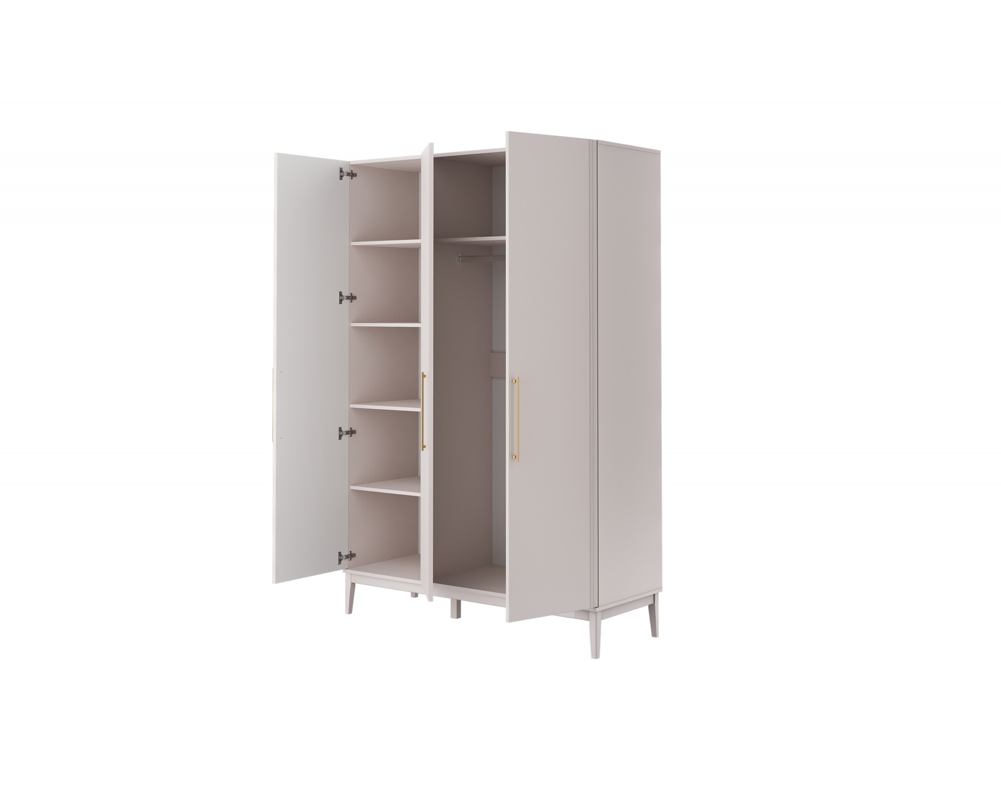 - Бесшумная работа: Все три двери оснащены петлями с доводчиками. Это обеспечивает мягкое и абсолютно тихое закрывание, сохраняя атмосферу спокойствия в вашей спальне.