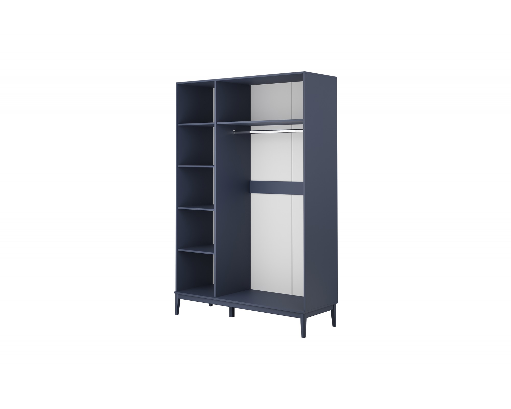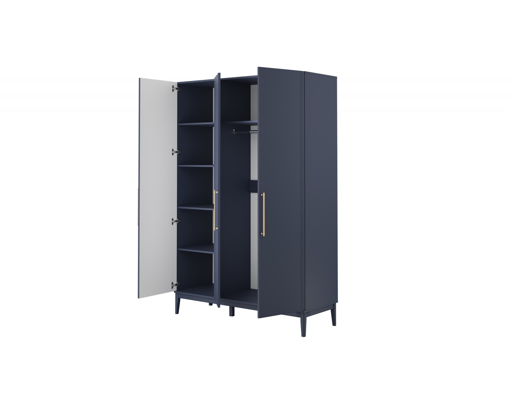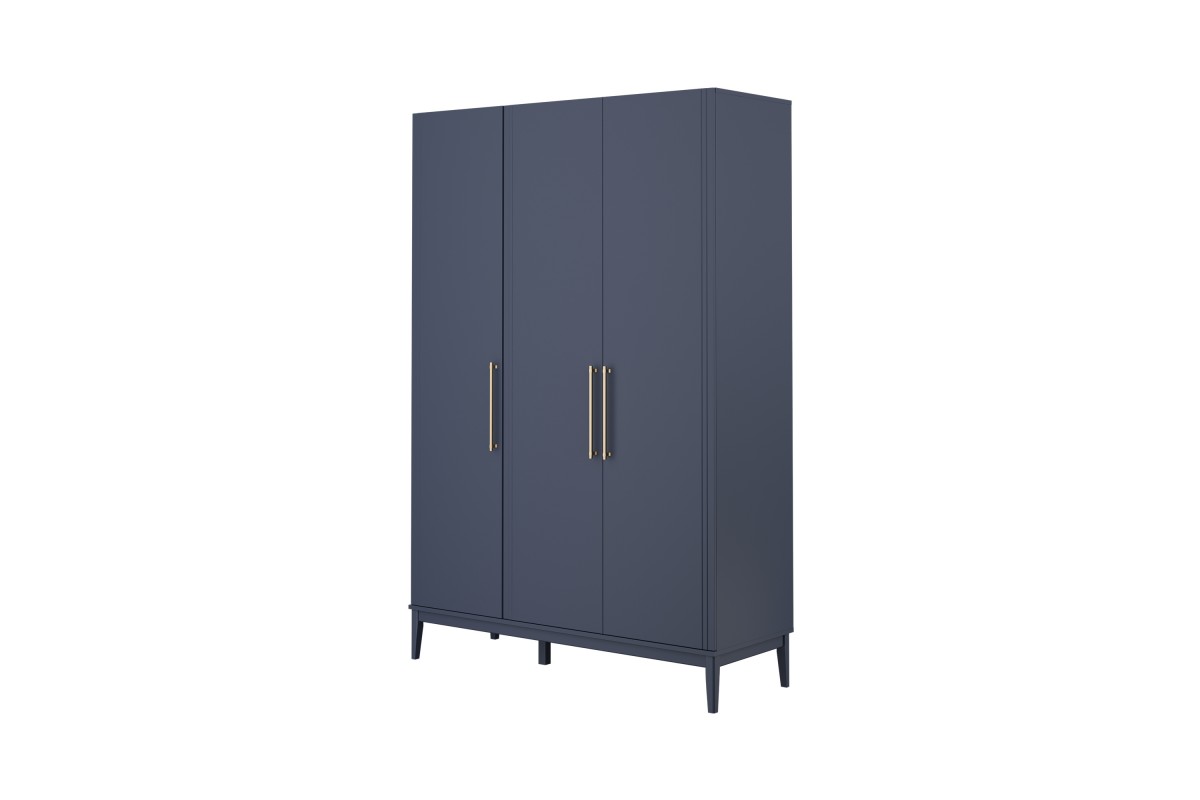 Трехдверный шкаф из коллекции «Джали» — это элегантный ответ на потребность в организации пространства в спальне или прихожей. При внушительной высоте 2200 мм он использует весь доступный объем комнаты. Глубокий «Тёмный лазурный» цвет фасадов с изысканной фрезеровкой превращает этот функциональный предмет мебели в центральный элемент вашего интерьера.