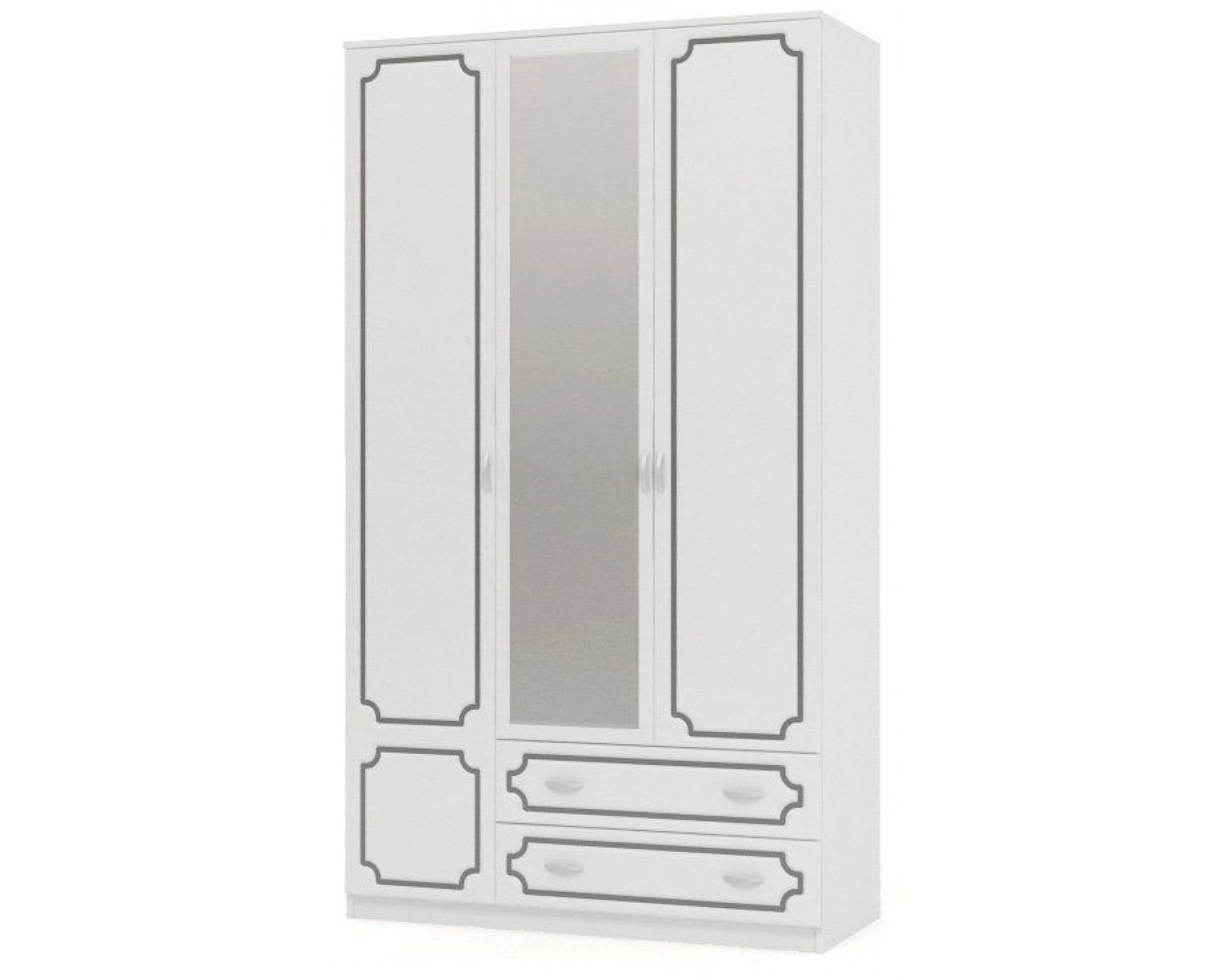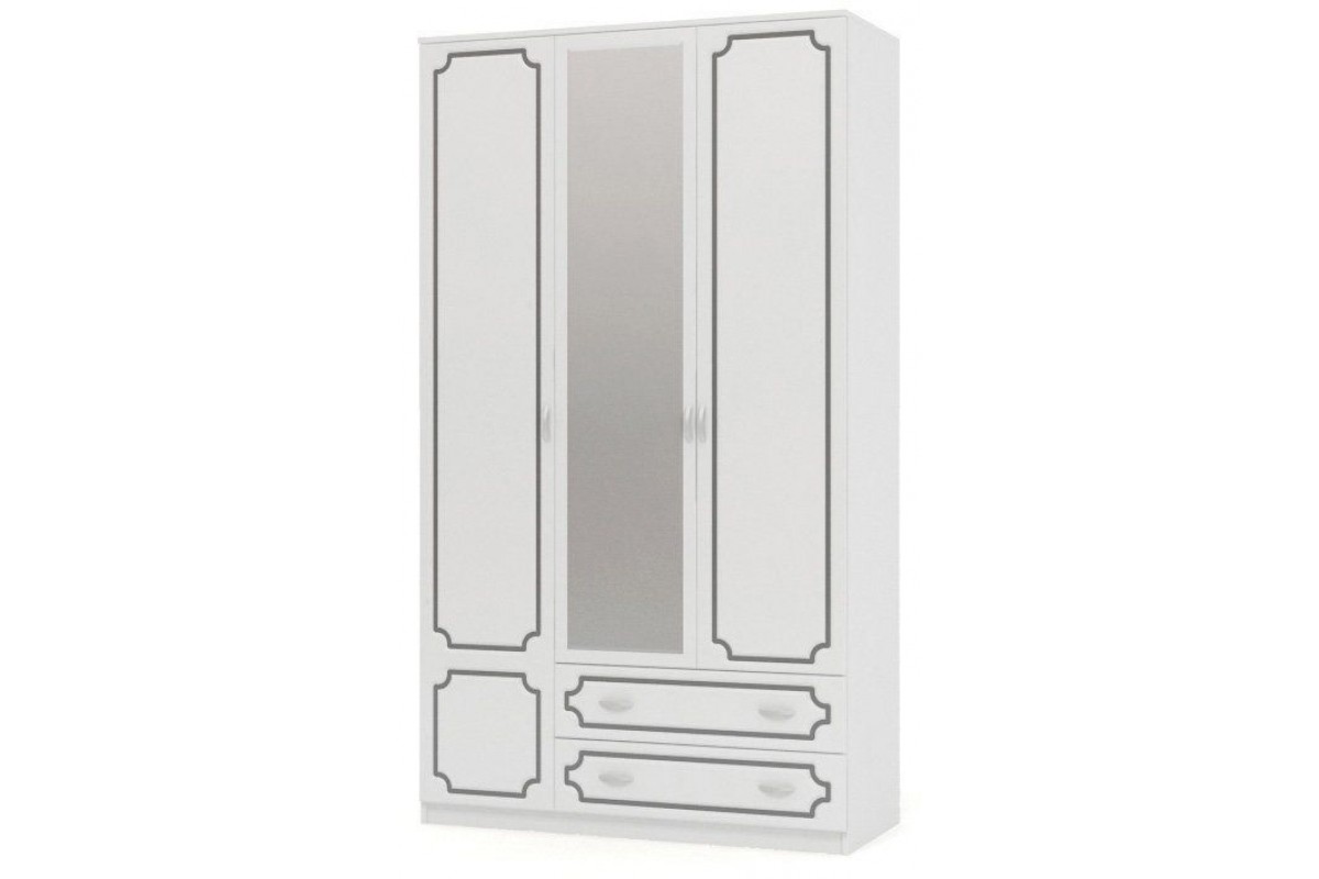 Шкаф распашной ШР-3 трехдверный с 1 зеркалом, из коллекции спальни Лакированный Белый Жемчуг.
