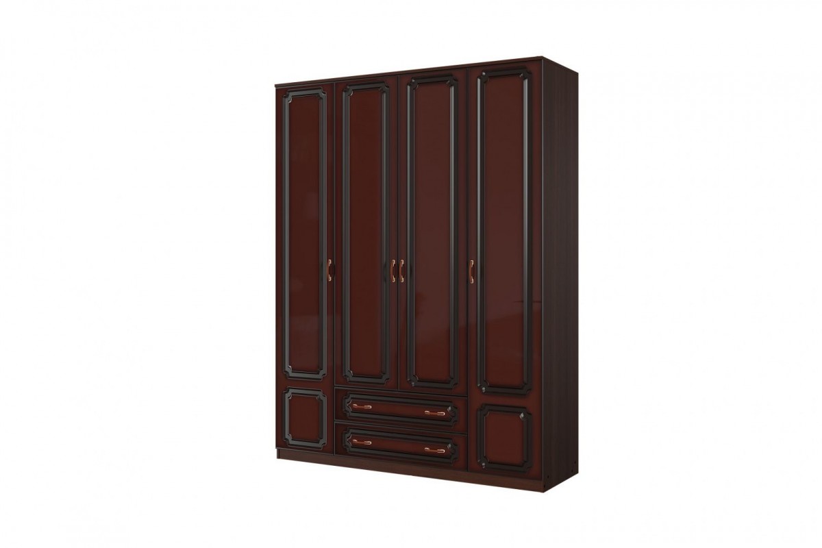 Шкаф распашной ШР-4 четырехдверный без зеркала, из коллекции спальни Лакированный орех темный.
