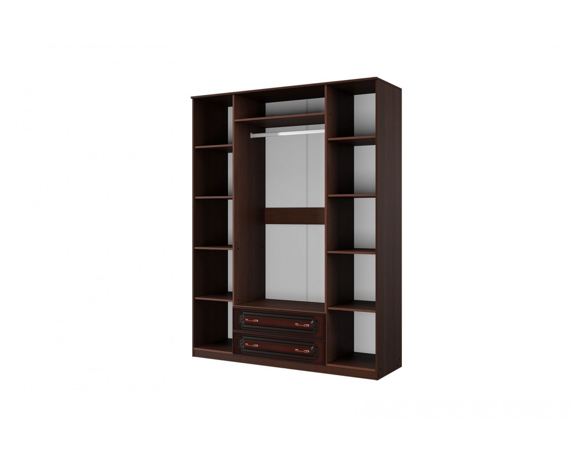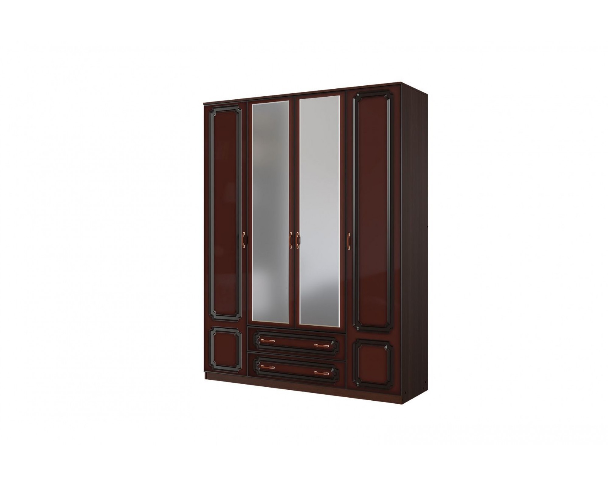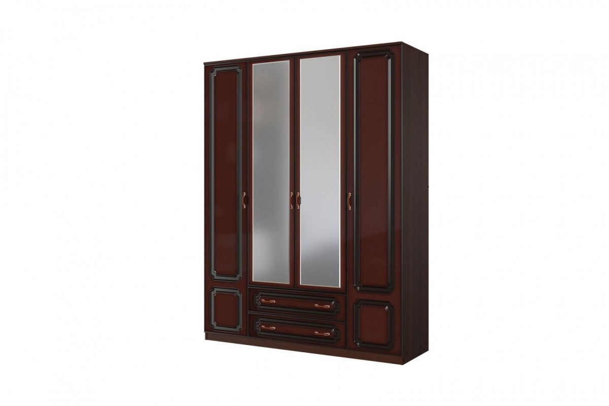 Шкаф распашной ШР-4 четырехдверный с двумя зеркалами, из коллекции спальни Лакированный орех темный.