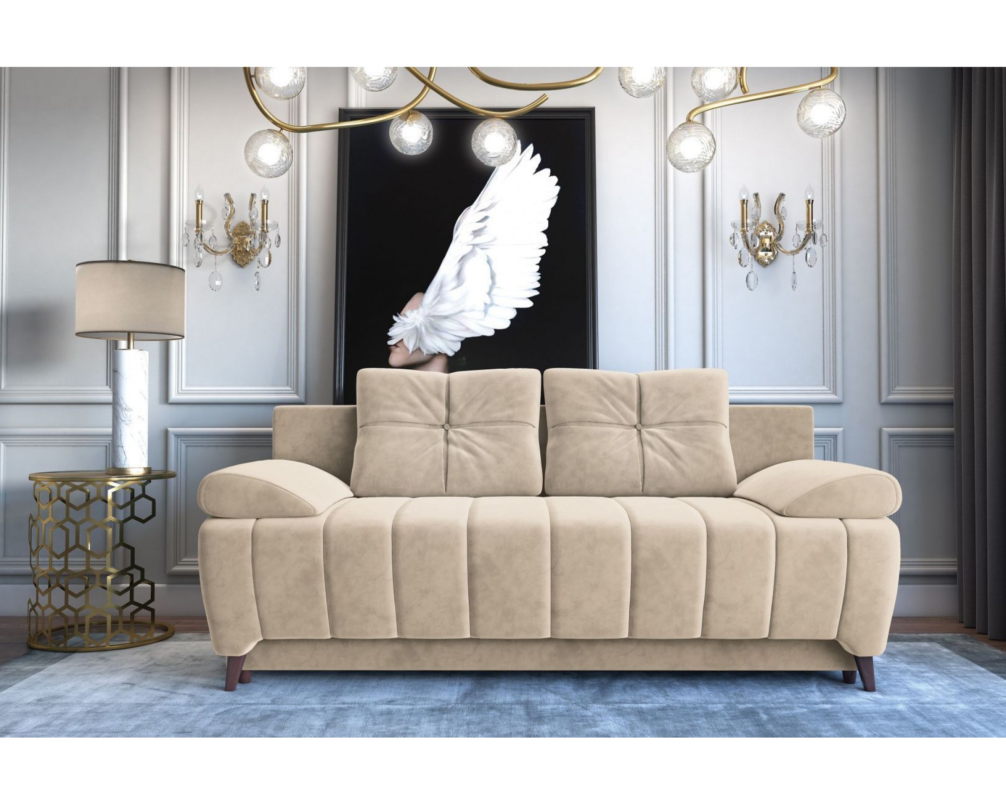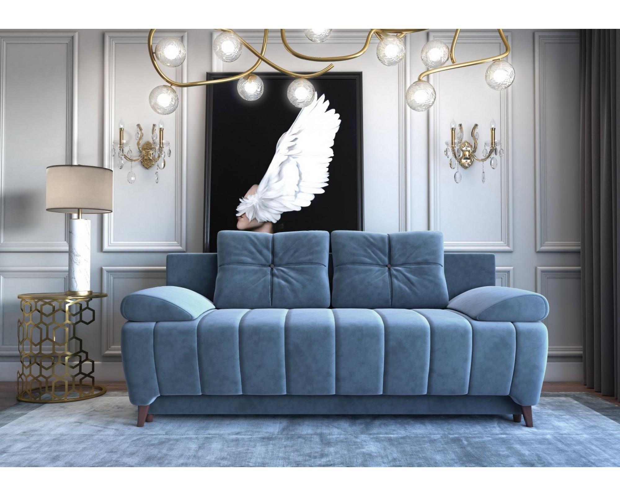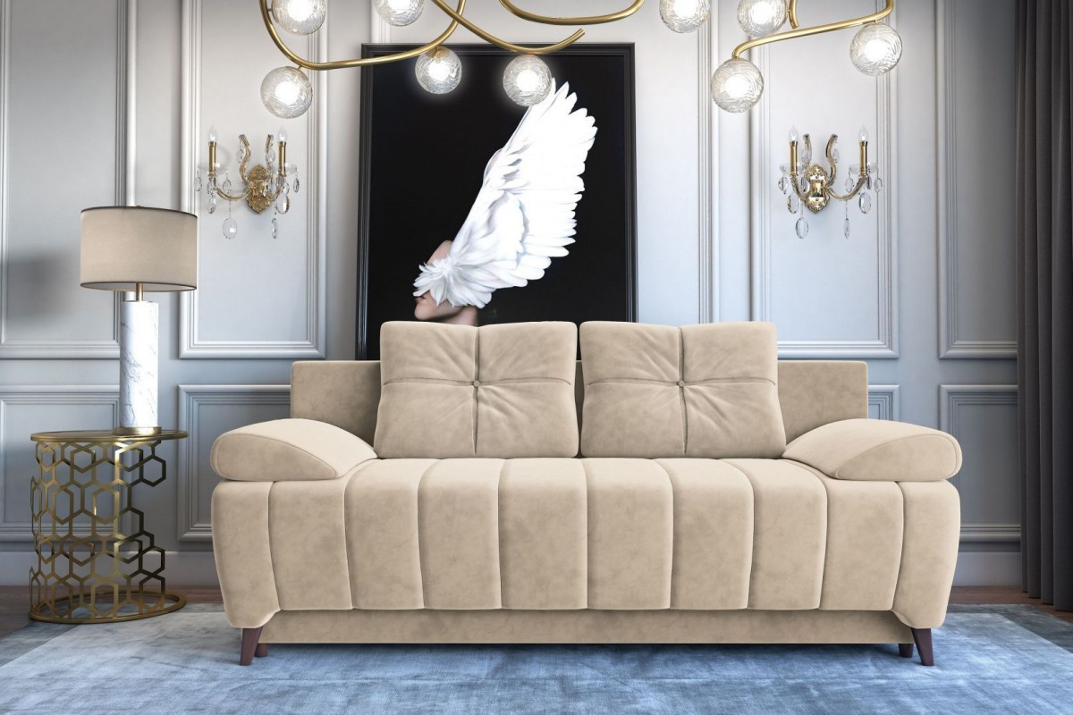 Диван-кровать любого из этих цветов станет стильным акцентом для любой комнаты, а элегантности ему добавляет необычная конструкция, одновременно массивная и лаконичная.