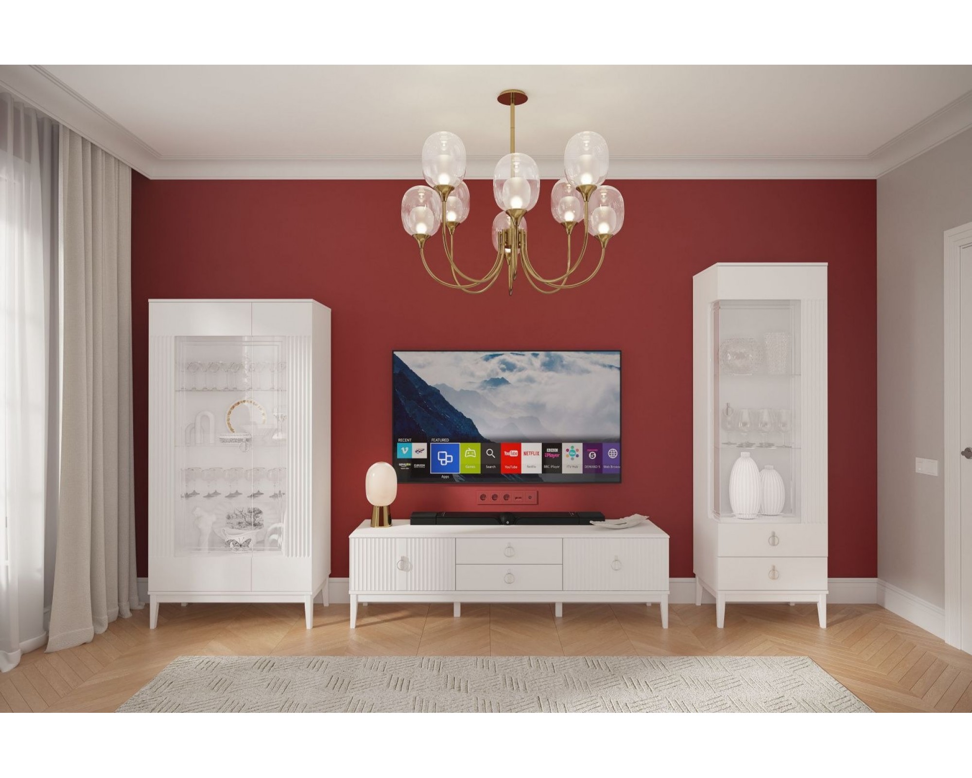 Двухдверная витрина из коллекции «Фарго» создана для тех, кто хочет наполнить гостиную светом и воздухом.