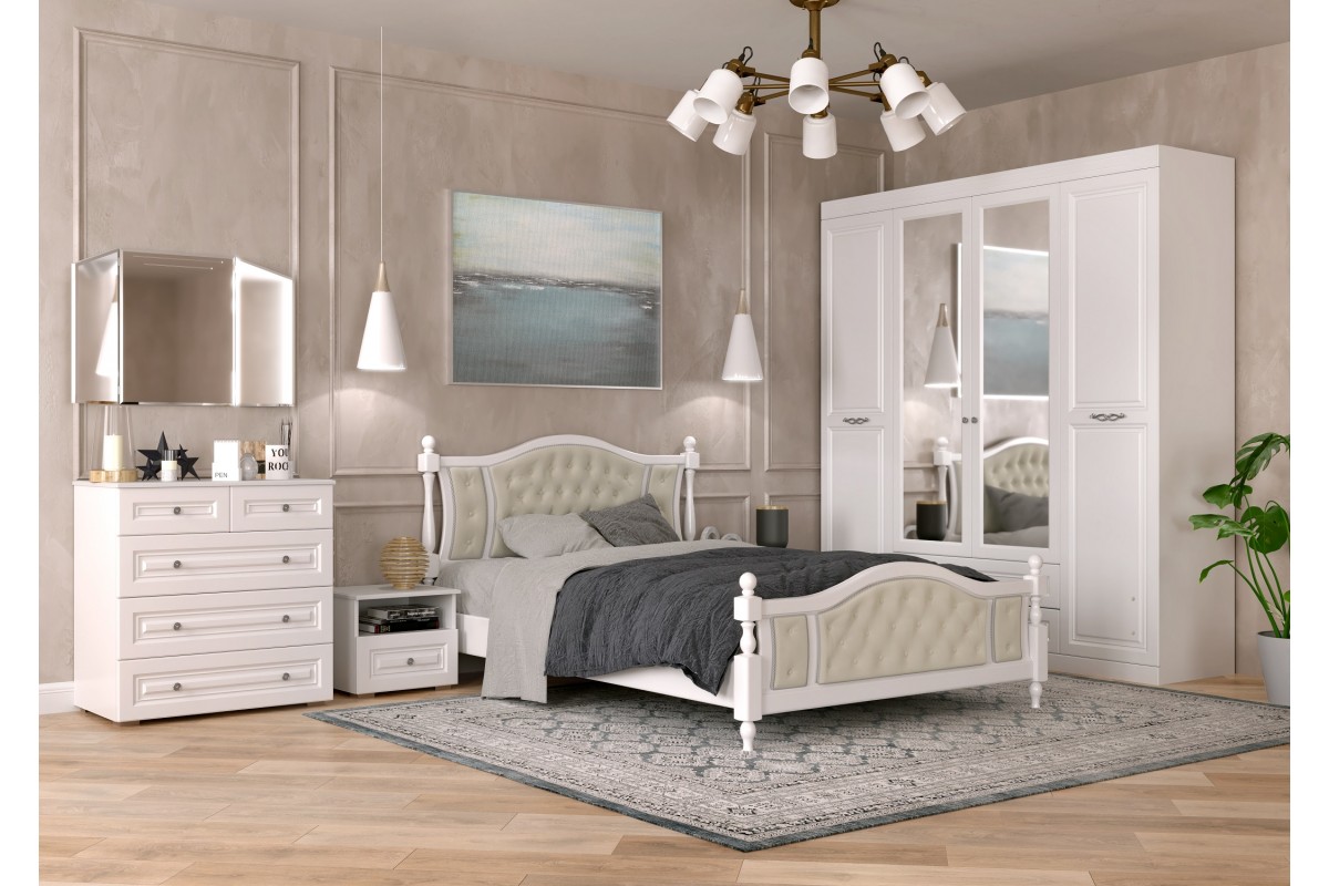 Классический вместительный распашной шкаф для одежды в белом цвете Олимп БРАВОмебель с зеркалами  - идеальная находка для тех, кто любит четкие линии, простоту и изящество.